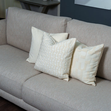 Soft, serene, and quietly stylish — the Studio Aurora Cream cushion is all about effortless elegance. Inspired by the soft glow of early morning light, this cushion features a subtle cut-pile geometric design that catches the light just enough to add depth without overwhelming your space. The creamy tone blends beautifully with neutral palettes, adding a warm, calming presence wherever it's placed.