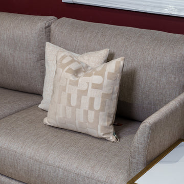 With its soft, sculptural cut pile and subtle geometric design, this feather-filled cushion brings a relaxed elegance to any space. The creamy taupe palette is soothing yet sophisticated, offering texture and style without overwhelming your room. It’s that go-to piece that instantly elevates a sofa, armchair, or bed with a touch of modern charm.